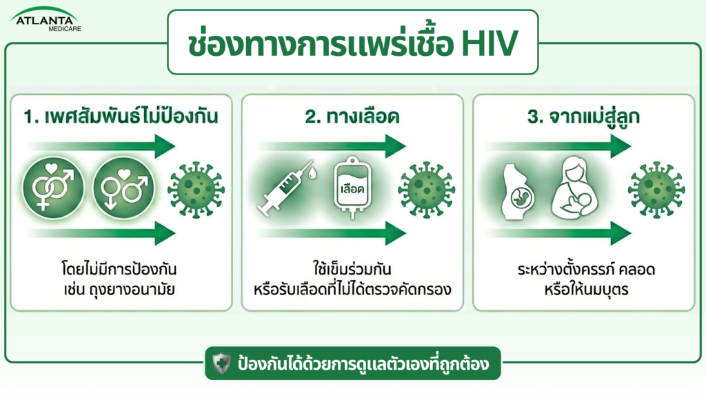 เชื้อ HIV สามารถแพร่ผ่าน 3 ช่องทางหลัก คือ: